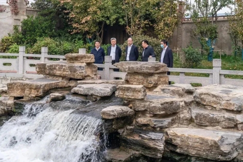 于2021年實施的古運河岸線美化靚麗工程,目前已處于完工待驗收階段。朱剛一行邊走邊看,了解沿河雜樹灌木清理、親水步道修建、駁岸護欄安裝、河道清淤等情況。