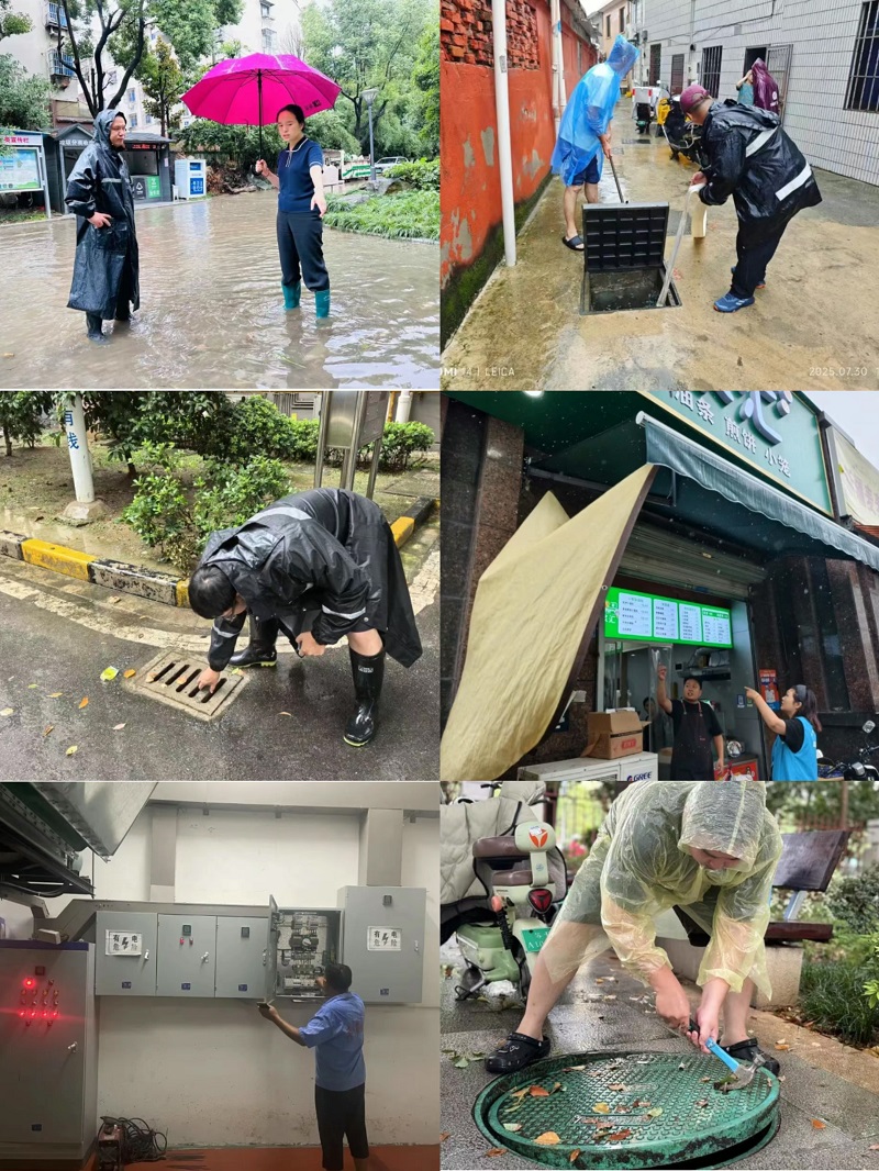 各社區組織力量對轄區內老舊房屋、低洼易澇點、地下車庫、河道閘站、沿街商鋪、高空構筑物等重點區域進行地毯式排查和24小時不間斷巡查。工作人員深入背街小巷、居民家中,仔細排查房屋漏雨、墻體隱患、電路安全、排水不暢等問題,及時疏通堵塞的窨井管道和排水溝渠。同時對沿街商鋪進行專項檢查,加固或移除松動廣告牌、擋雨布,轉移高空花盆,排查裝修工地安全隱患。