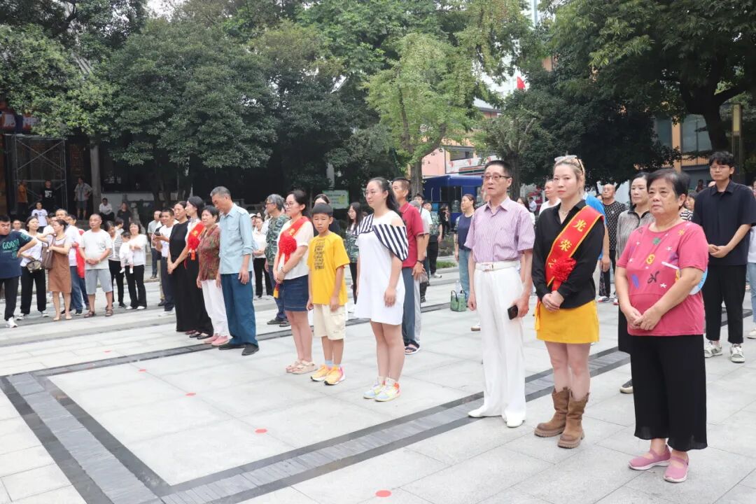 活動現(xiàn)場氣氛莊重而熱烈,暖場音樂激昂奮進(jìn),鑼鼓隊的助陣更是增添了一份喜慶的氛圍,吸引了眾多市民紛紛駐足觀看。崇安寺街道和山北街道的相關(guān)負(fù)責(zé)同志,以及退役軍人代表、社區(qū)居民等百余人共同參加了儀式。